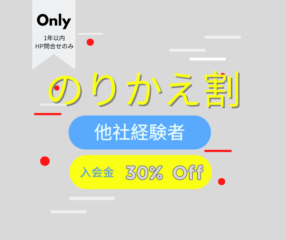下記の条件に該当されます方は、入会金(¥55,000)より30%OFFとさせていただきます。